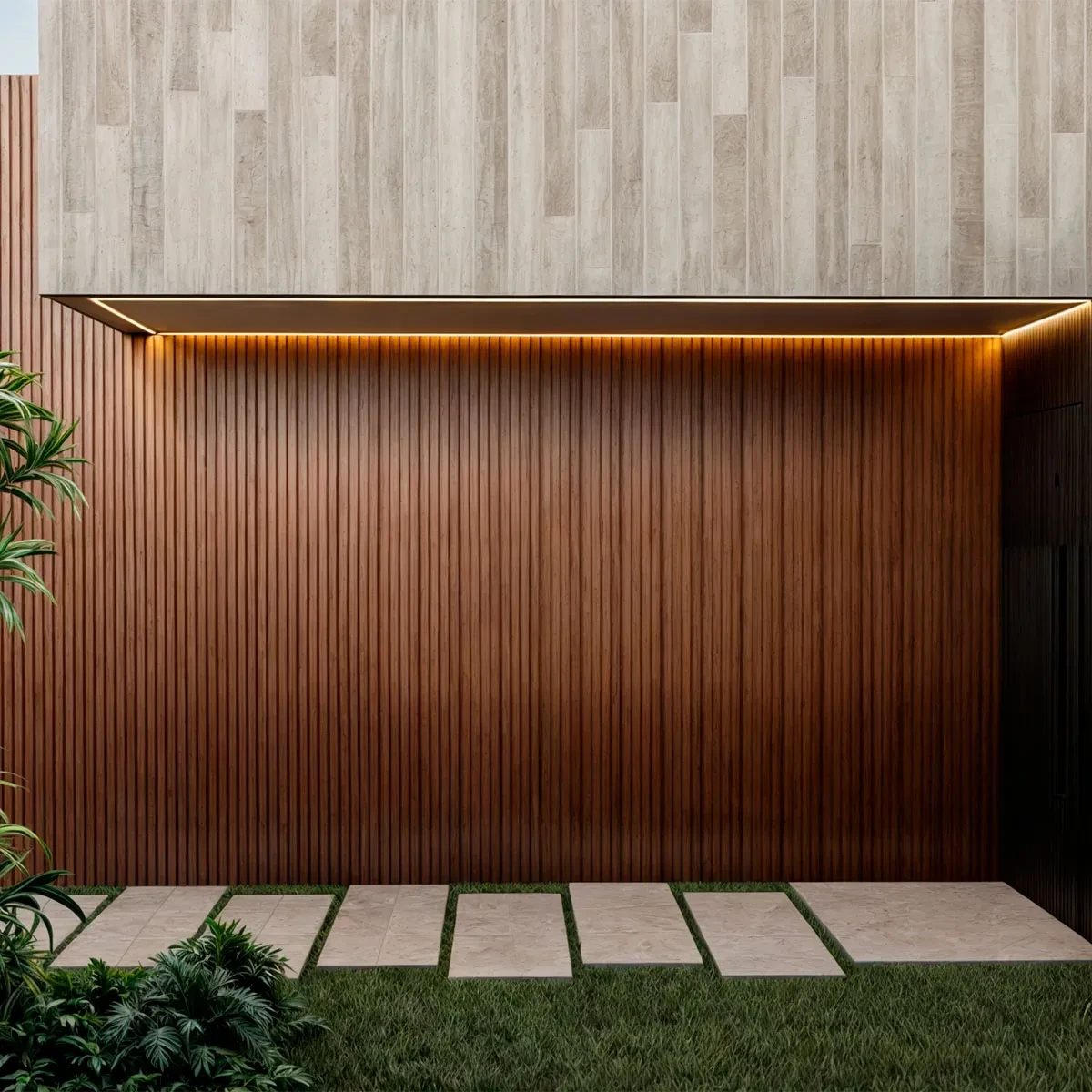 Estética Versátil: Disponíveis em diversas cores e acabamentos, os painéis ripados permitem uma ampla gama de aplicações, desde fachadas de edifícios até cercas e pérgolas, proporcionando um toque contemporâneo aos projetos.